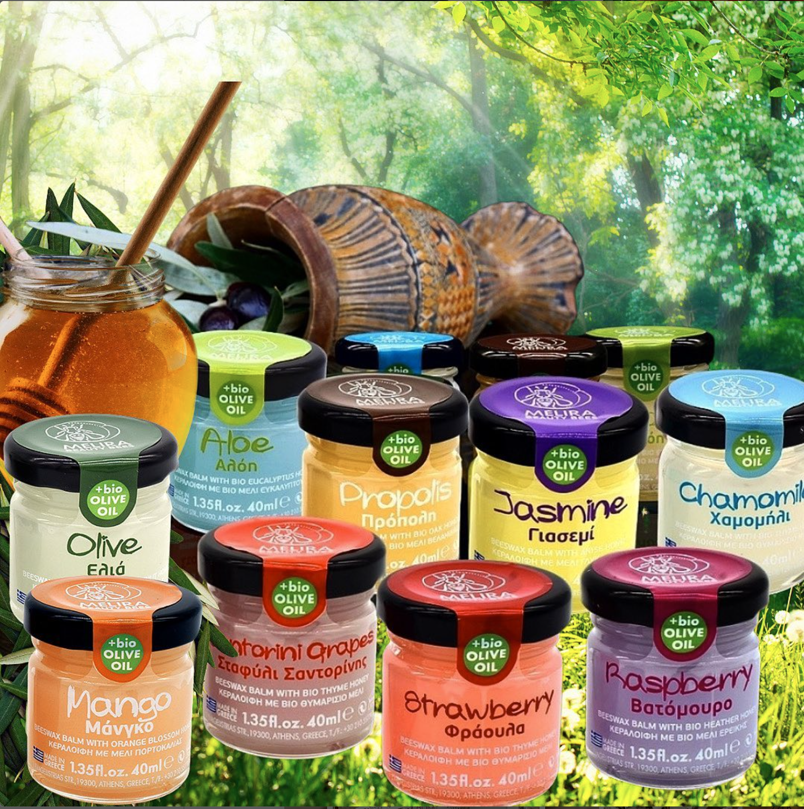 Melira 蜜蝋バーム サントリーニ グレープ バイオタイムハニー入り 40ml / 1.35 オンス