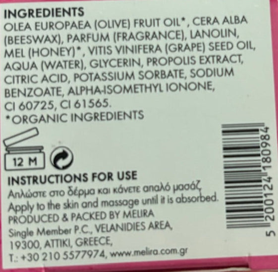 Melira Beeswax Balm Santorini Grapes With Bio Thyme Honey 40ml / 1.35 oz.